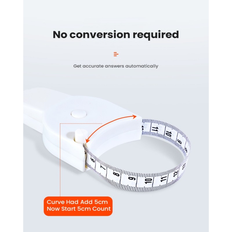 Det smarta designen gör det lätt att lägga måttbandet runt området och dra åt för ett exakt mått, utan att behöva hålla i båda ändarna. Kompakt och lätt att ha i väska, syask eller låda.