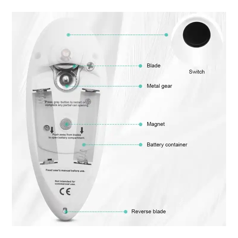 Åbn dåser uden besvær ved at bruge vores elektriske dåseåbner. Hurtig og bekvem, den har en one-touch-betjening - ingen komplekse indstillinger!