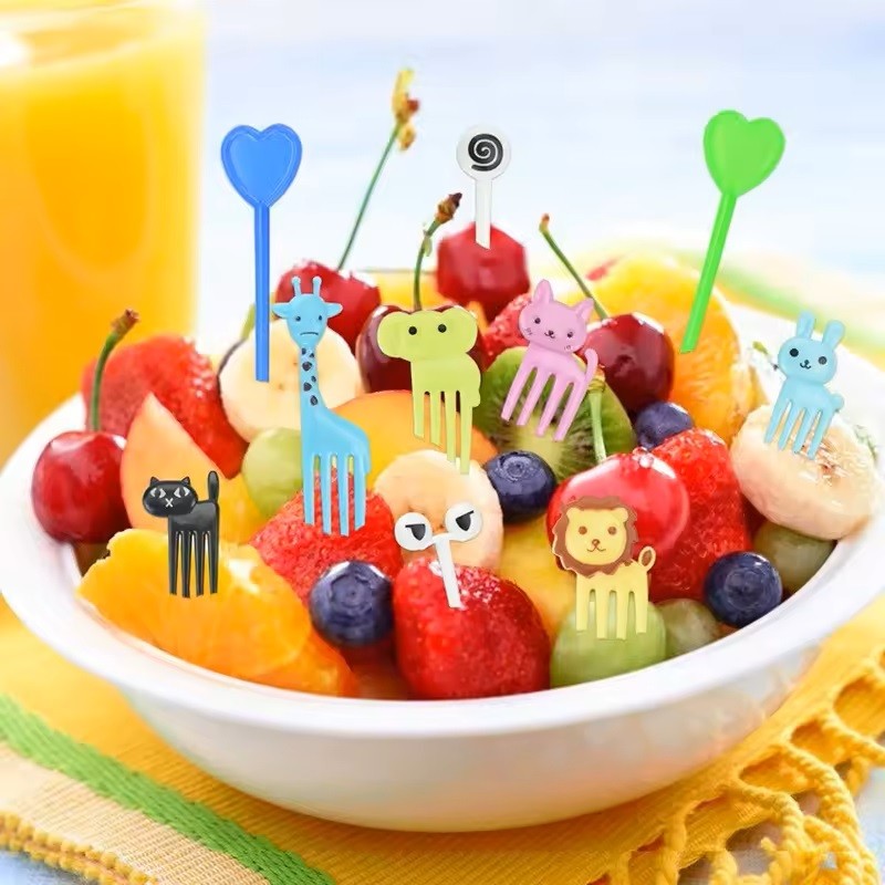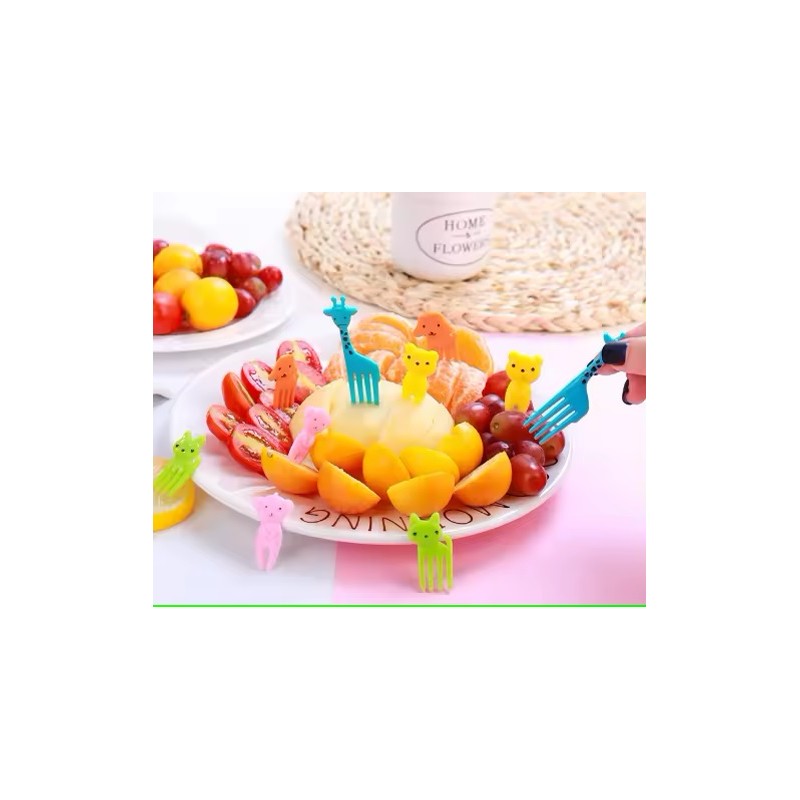 Stilfulde og sjove frugtpinde med dyreillustrationer er en fantastisk tilføjelse til børnenes madpakke. Disse gafler/pinde opmuntrer til sund spisning og gør måltiderne sjovere. Let at rengøre og genanvende, perfekt til både skole og picnic.