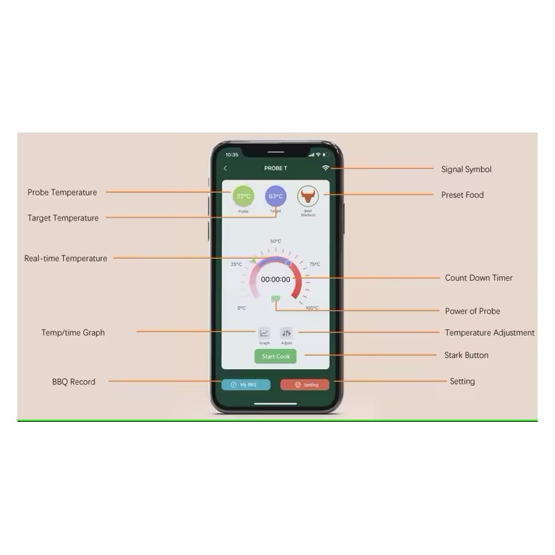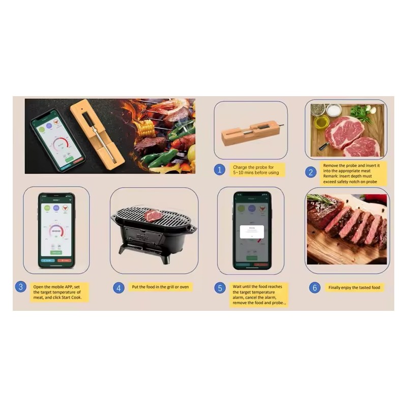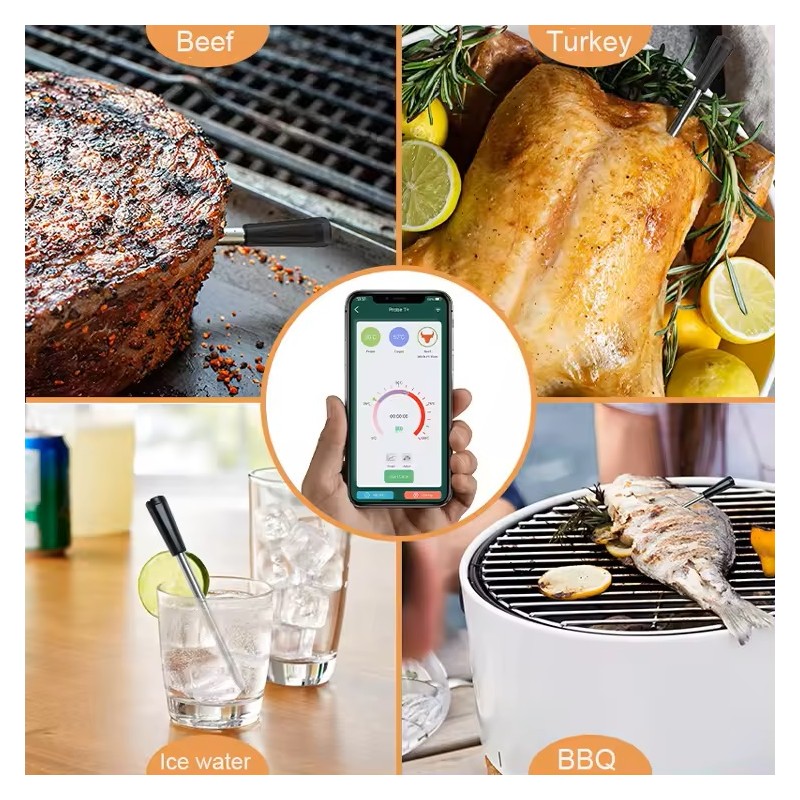 Smart trådløst Bluetooth termometer til præcis temperaturmåling. Ideel til madlavning, grillning og bagning. Overvågning via mobilapp.