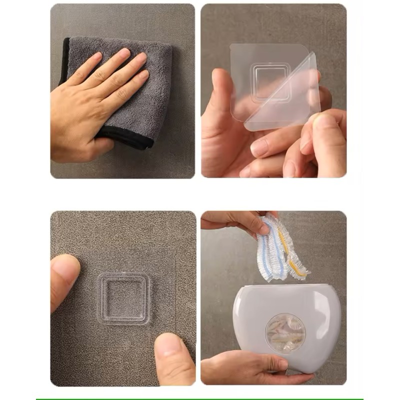 Den medföljande självhäftande väggfästet gör det möjligt att montera behållaren på väggen, vilket sparar plats på bordet och håller plastfolien lättillgänglig. En perfekt kombination av funktionalitet och hygien för modern matförvaring.