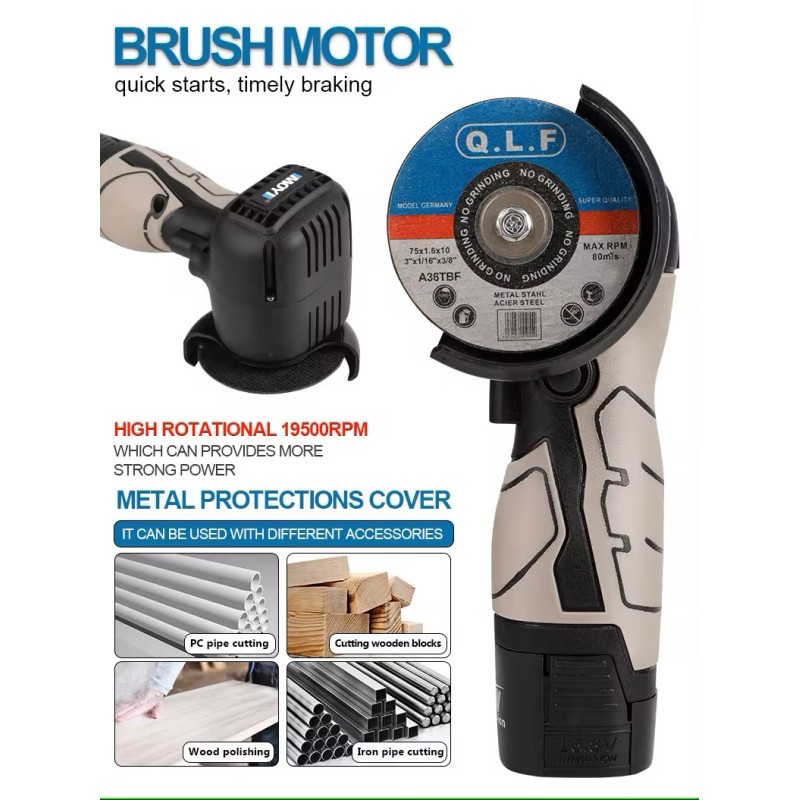 Denne 16,8 V mini vinkelsliber er en kraftfuld og alsidig maskine perfekt til både hobbybrugere og professionelle. Med sit kompakte design er den let at manøvrere, samtidig med at den leverer imponerende skæreydelser. Ideel til præcisionsarbejde og kan bruges til en lang række materialer. Med et ergonomisk håndtag er den behagelig at bruge i længere perioder. Opgrader dit værktøjskasse med denne effektive vinkelsliber fra Testudstyr.dk.