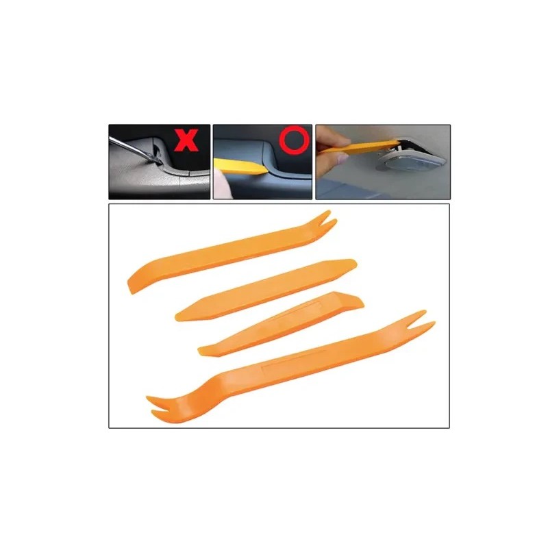 Detta 4-delade avdragarset är designat för att enkelt och säkert ta bort fönsterlister, plastclips, innerpaneler och andra fastsatta delar – utan att skada ytorna. Ett oumbärligt verktyg för både gör-det-själv-entusiaster och professionella mekaniker.
