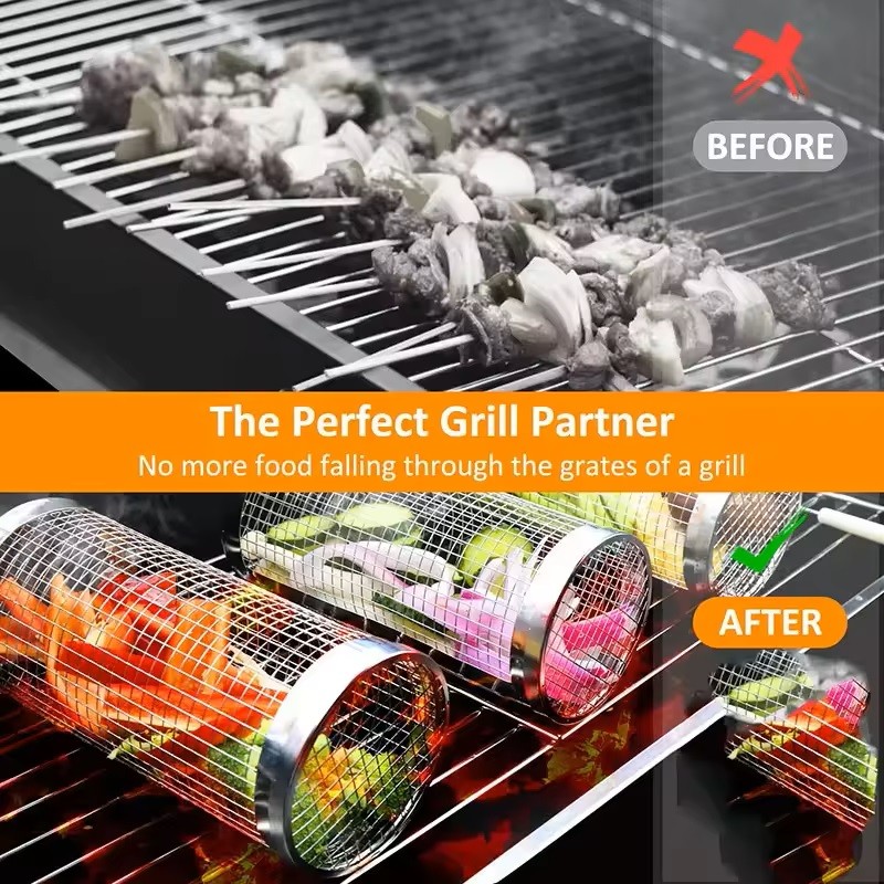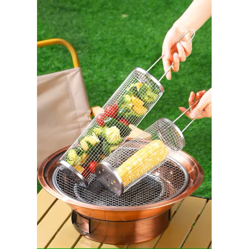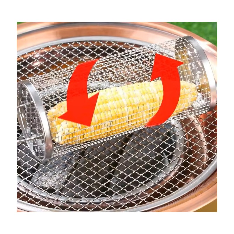 Den rullende grillkurv i rustfrit stål 304 er designet til nem og jævn grilloplevelse. Hold dine grillede retter perfekte og jævnt tilberedte med denne holdbare og praktiske løsning.