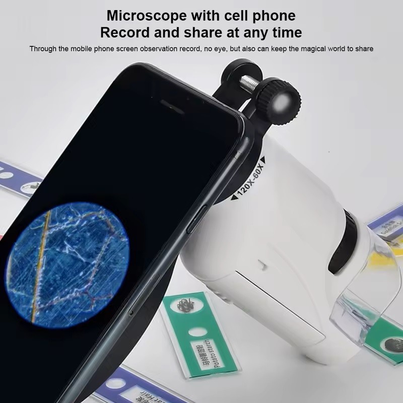 Ta med vetenskapen överallt med detta smarta mini mikroskop. Det är kompakt, lätt och perfekt för alla som vill utforska världen i detalj. Med justerbar förstoring och tydlig bildkvalitet får du en unik upplevelse av den mikroskopiska världen – direkt i handen.