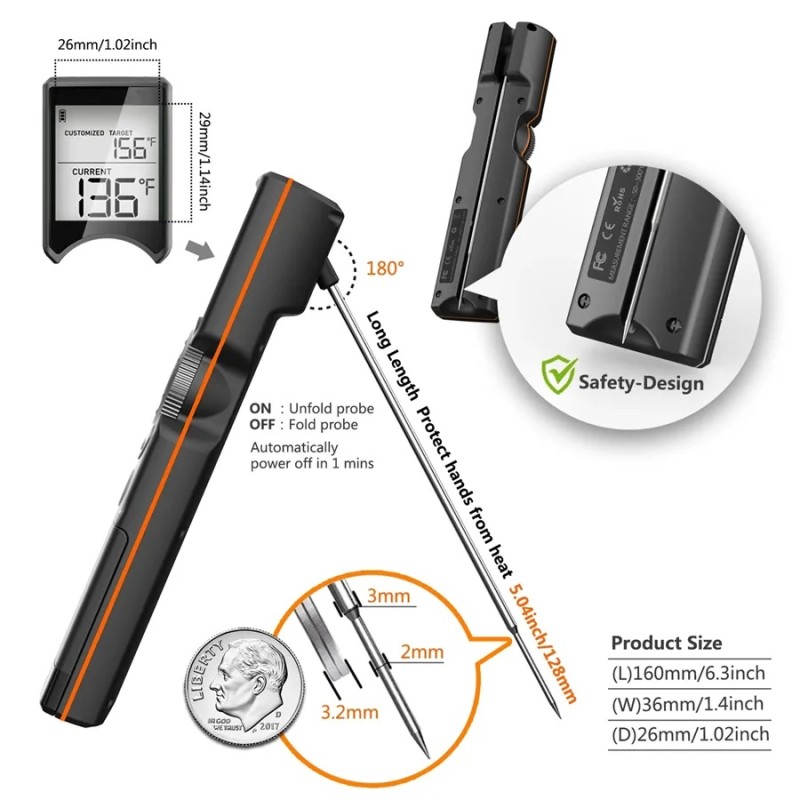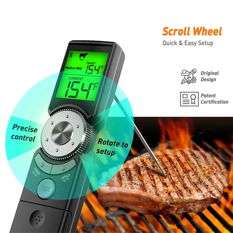 Smart trådløst Bluetooth termometer til præcis temperaturmåling. Ideel til madlavning, grillning og bagning. Overvågning via mobilapp.