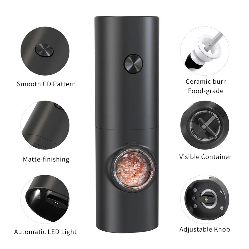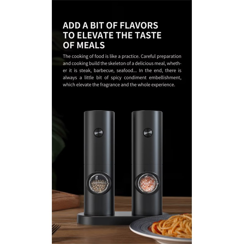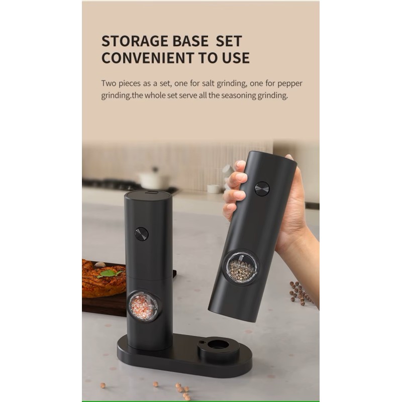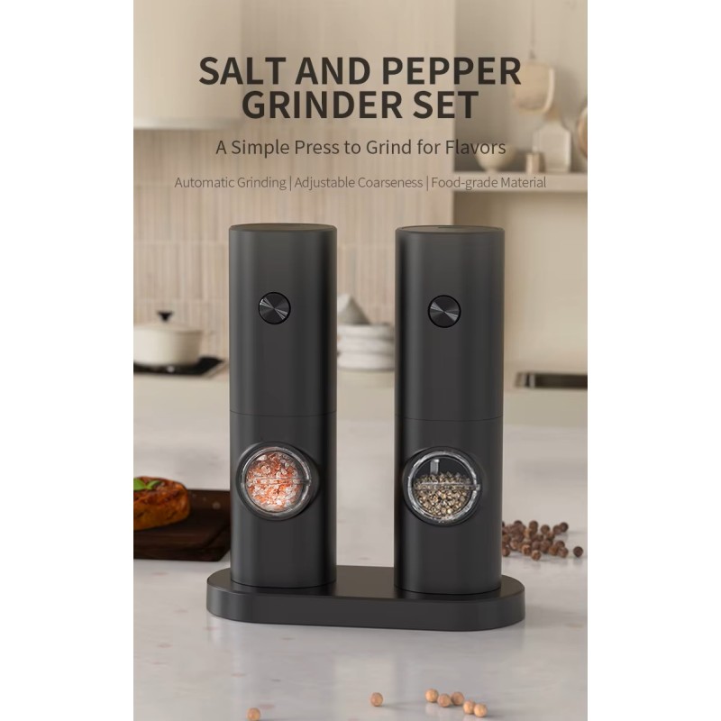 Elegant genopladeligt salt- og pebersæt til køkkenet. Holdbar, stilet og praktisk til enhver madoplevelse.