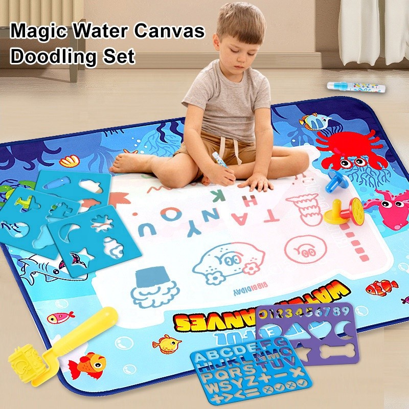Denna vattenbaserade målmatta ger timmar av kreativ underhållning. Använd de medföljande Magic-pennorna, ritmallar, designhäfte och stämplar för att skapa färgstarka motiv samtidigt som barnen tränar fantasi, motorik och öga-hand-koordination.