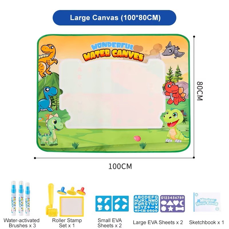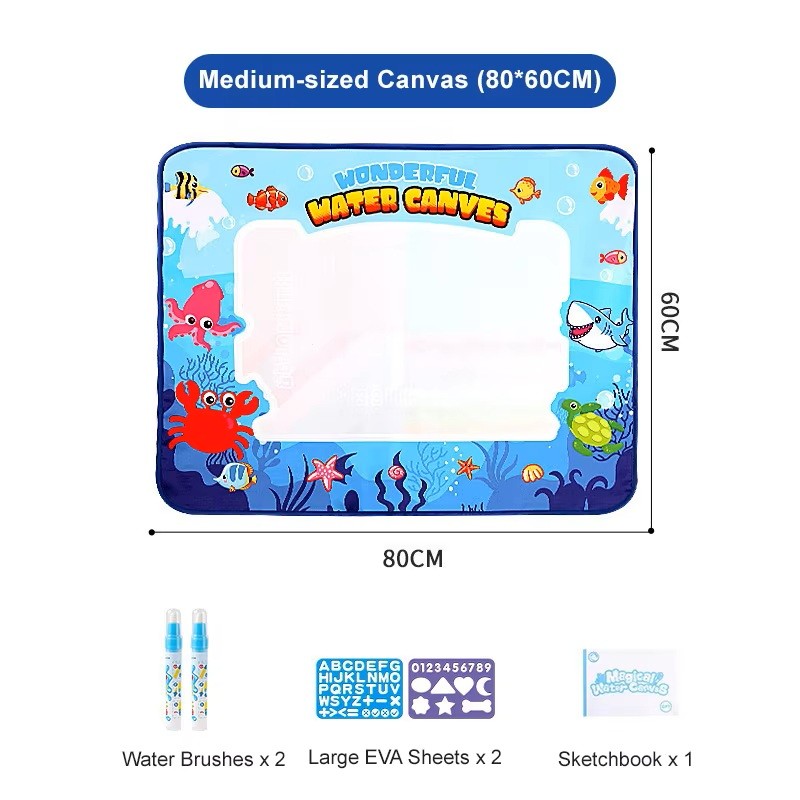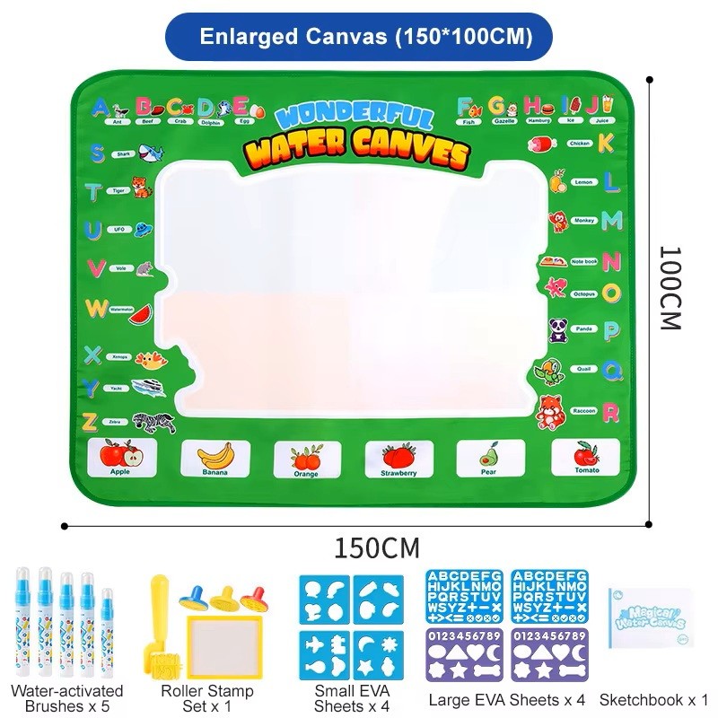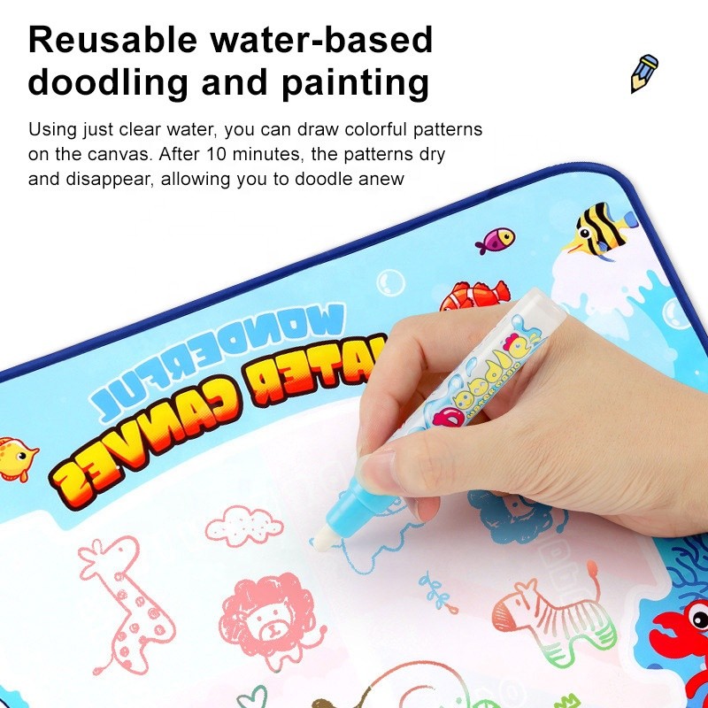 Rita med vatten, se färgerna framträda – och se dem försvinna igen när mattan torkar! Den kan användas igen och igen, helt utan färgspill eller papper.