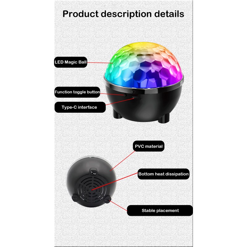 Tack vare Type-C-anslutningen kan du enkelt koppla lampan till powerbank, laddare eller USB-port. Oavsett om du är hemma, på klubben, vid KTV eller på resande fot får du färgsprakande festbelysning på några sekunder.