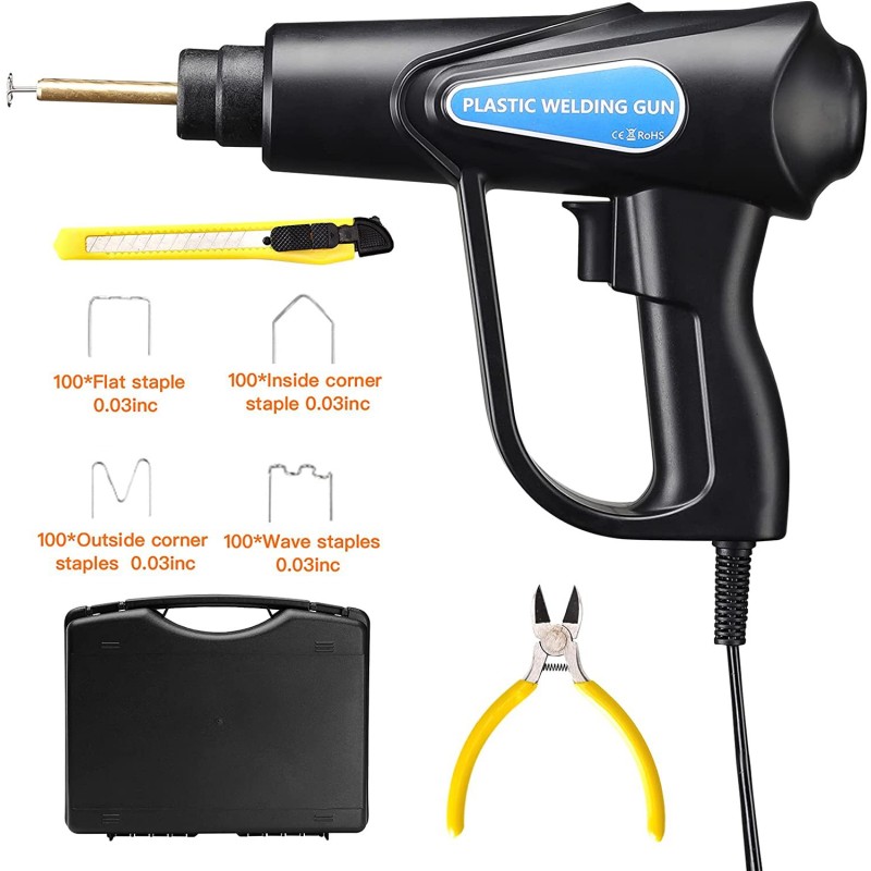 Setet inkluderar 4 olika typer av häftklamrar (platt, invändigt hörn, utvändigt hörn och vågig), så att du kan anpassa reparationen efter vilken typ av plastdel du arbetar med. Den vågiga häftklamren ger maximal styrka och motståndskraft mot stötar och vridning.