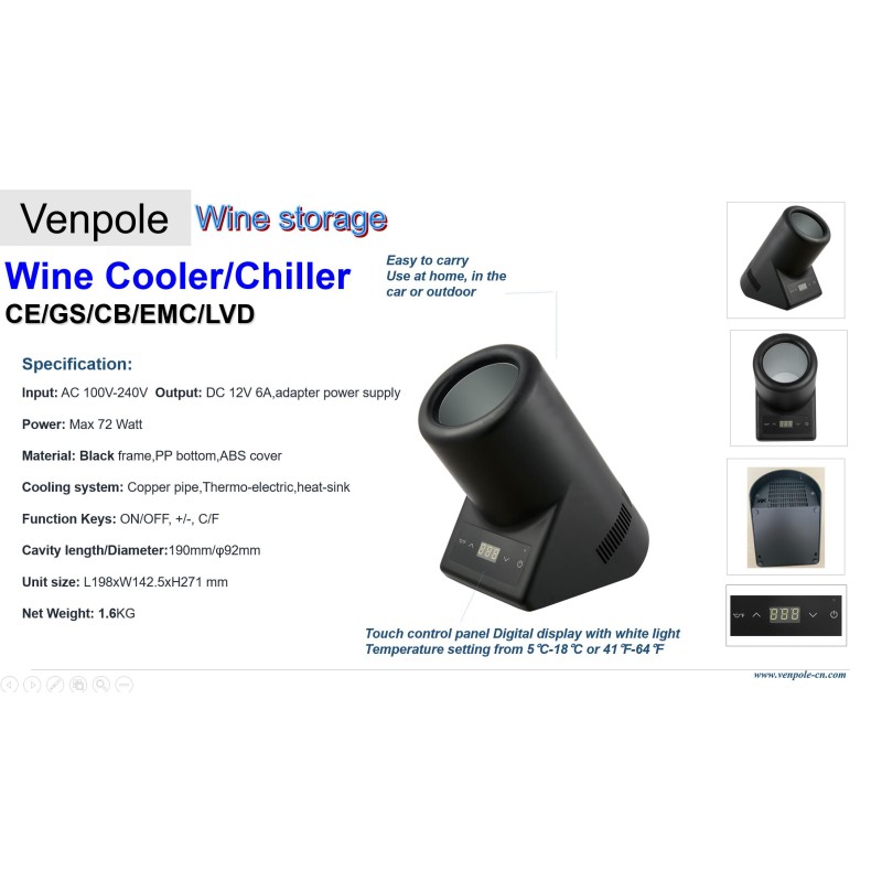 Denna elektriska vinkylare är det perfekta valet för vinälskare som vill ha snabb, exakt och stilfull kylning av sina favoritflaskor – oavsett var de befinner sig.