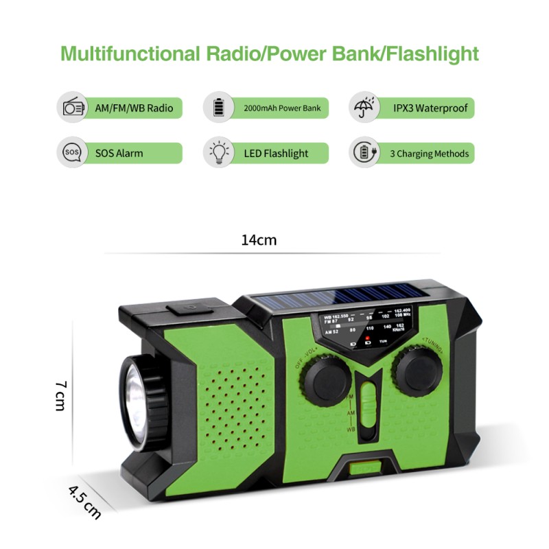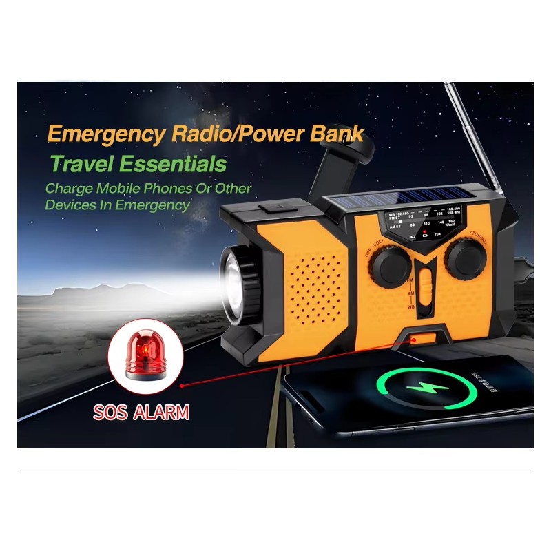 Oavsett om du vistas i naturen, campar eller vill vara redo vid strömavbrott och krissituationer, är denna avancerade nödradio ett oumbärligt verktyg. Med NOAA väderkanaler, kraftfull LED-ficklampa, SOS-nödljus, 2000 mAh powerbank och flera laddningsalternativ får du maximal trygghet – när det verkligen gäller.