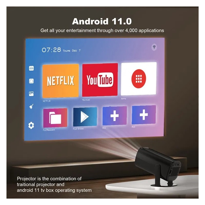 En kompakt 720p HD mini projektor med WiFi 6, Android 11 och automatisk keystone. HY320 ger dig en storbildsupplevelse upp till 150 tum – perfekt för filmkvällar, spel och presentationer.