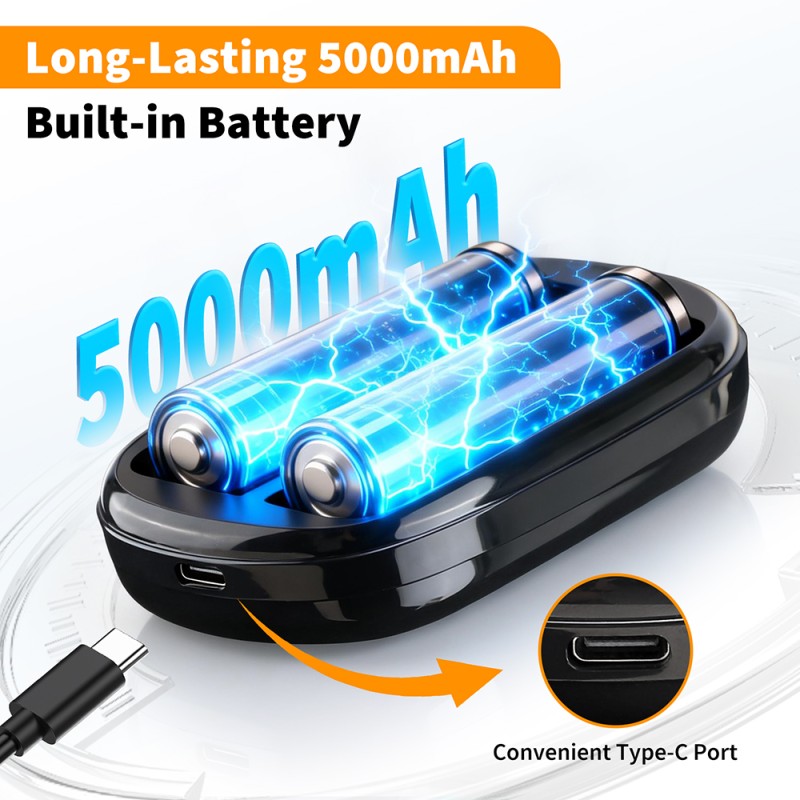 Det inbyggda 5000 mAh uppladdningsbara batteriet ger full rörelsefrihet. Laddas enkelt via USB och kan användas var som helst.
