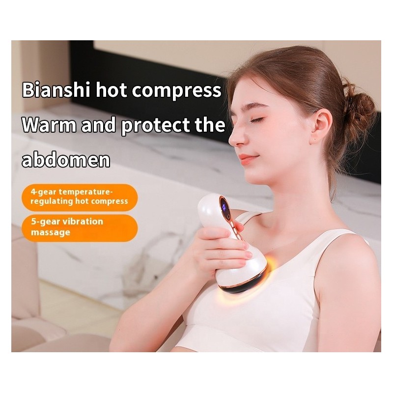 Upplev modern wellness med traditionella rötter. Denna elektriska Gua Sha-massageapparat kombinerar klassisk kinesisk terapi med modern teknik för effektiv avslappning, smärtlindring och förbättrad hudhälsa. Den släta Bian-stenen ger en naturlig och behaglig kontakt med huden, medan värmeterapi och flera hastighetslägen förstärker effekten.