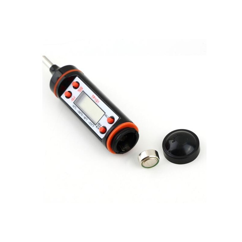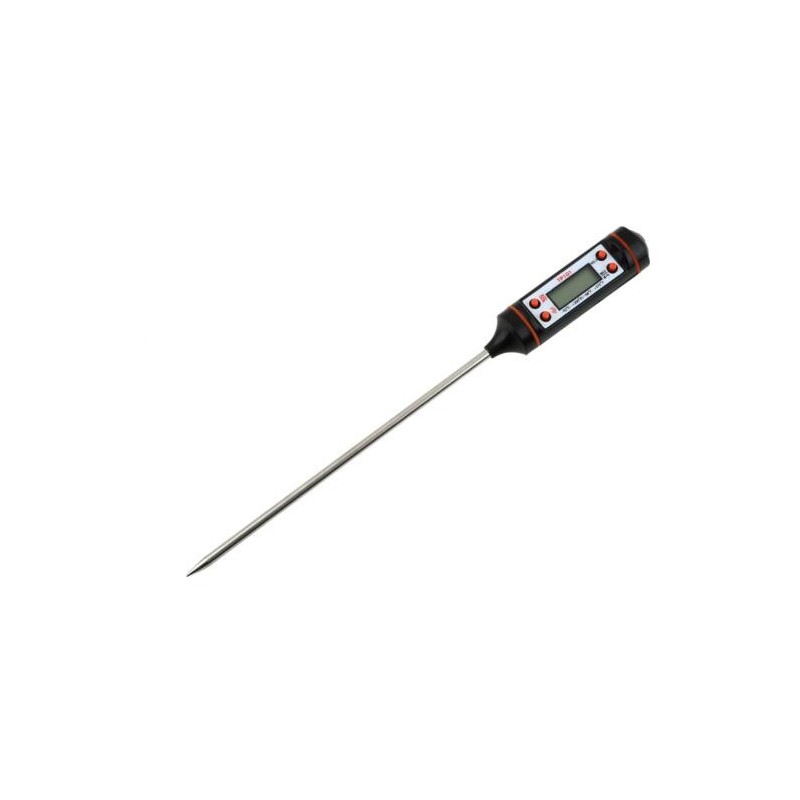 Digitalt termometer med rustfrit stål sensor sonde kan bruges til en lang række forskellige type fødevarer meget let at bruge, har en stor og enkel LCD-skærm - Stort udvalg af applikationer - Lang rustfrit stål sensor sonde - Bredt temperaturområde mellem -50 'C og 300' C (58 'F til 572' F) - Lavt batteri indikation - Beskyttelseshætte inkluderet henblik opbevaring og sikkerhed - Benytter LR44 batteri (inkluderet)