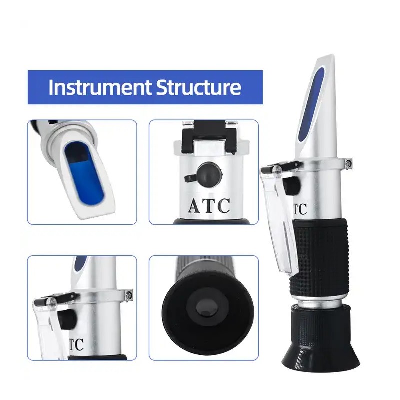 Refraktometeret er modellen med ATC - Automatisk temperatur korrektion, med en nøjagtigt indenfor 10-30 grader celcius.