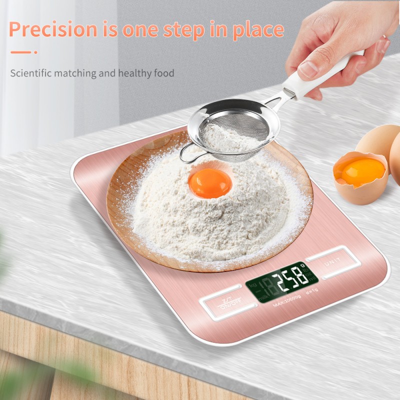 Denna digitala köksvåg kombinerar funktionalitet, stil och precision, så att du kan mäta ingredienser snabbt och exakt samtidigt som köket förblir snyggt och organiserat.