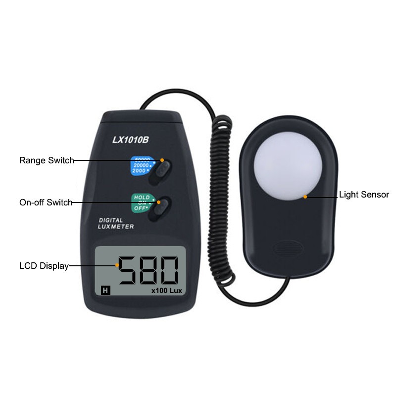 Använd den för att säkerställa korrekt belysning på kontor, verkstäder, klassrum, fotostudior eller i industriella miljöer. Den är utrustad med en bakgrundsbelyst display, läs-hold-funktion, automatisk nollställning och automatisk avstängning, vilket gör den både effektiv och användarvänlig.