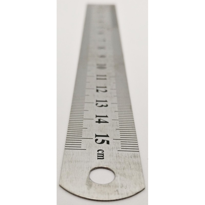 Denna professionella linjal i rostfritt stål är det perfekta verktyget för exakta mätningar – både i centimeter och tum. Med en metrisk skala från 0–15 cm på ena sidan och en tumskala från 0–6" på den andra får du maximal flexibilitet i en kompakt linjal.